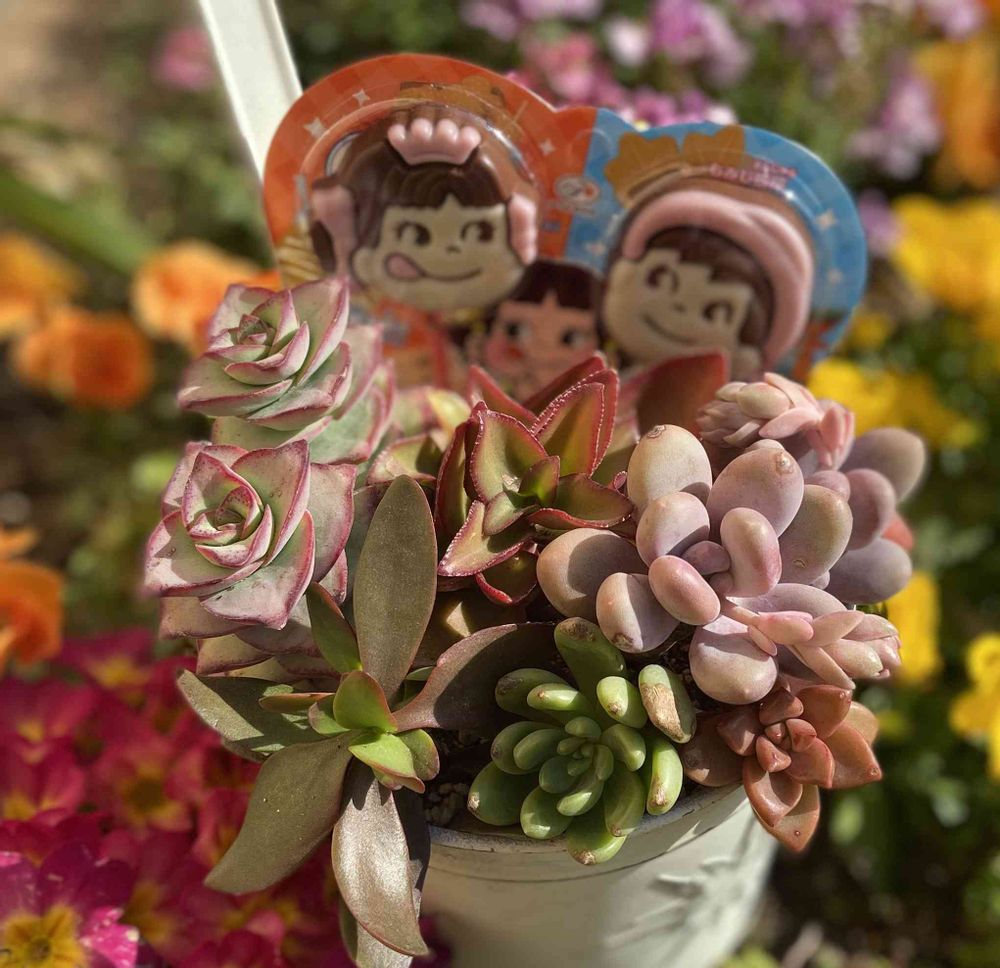 ペコちゃんも可愛いし、寄せ植えも可愛いです😍