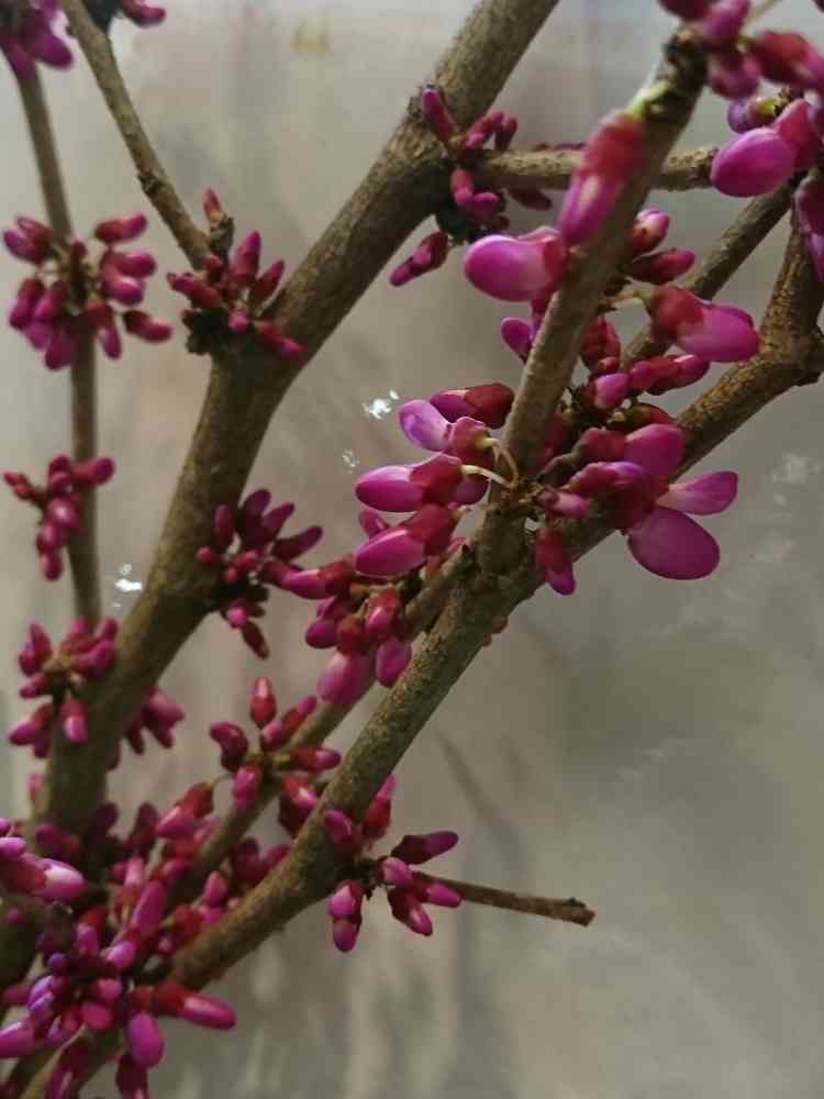ハナズオウって名前なんですね~枝の付け根から、濃いピンクの花がたくさん咲いてるので不思議でした(^_-)ありがとうございます♪