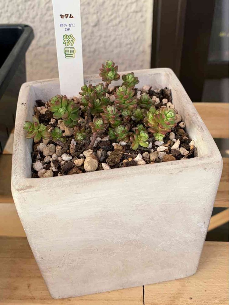 可愛らしい枝ぶりの粉雪さんやっと見つけたので3coinsで見つけたイメージピッタリの鉢があったのでそれに植え替えました(*´▽`人)