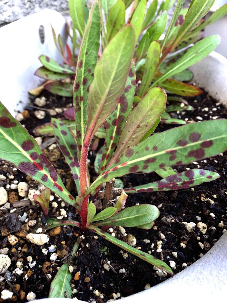 「ガウラ 葉 斑点」で検索すると一番上に出てくる松原園芸さんのブログ記事があるのですが、それを見ると病気ではないみたいですよ。