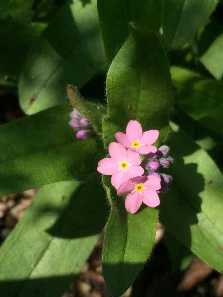 毎年 一株くらいは ピンク色だけのワスレナグサがあります。 今日 発見です。
