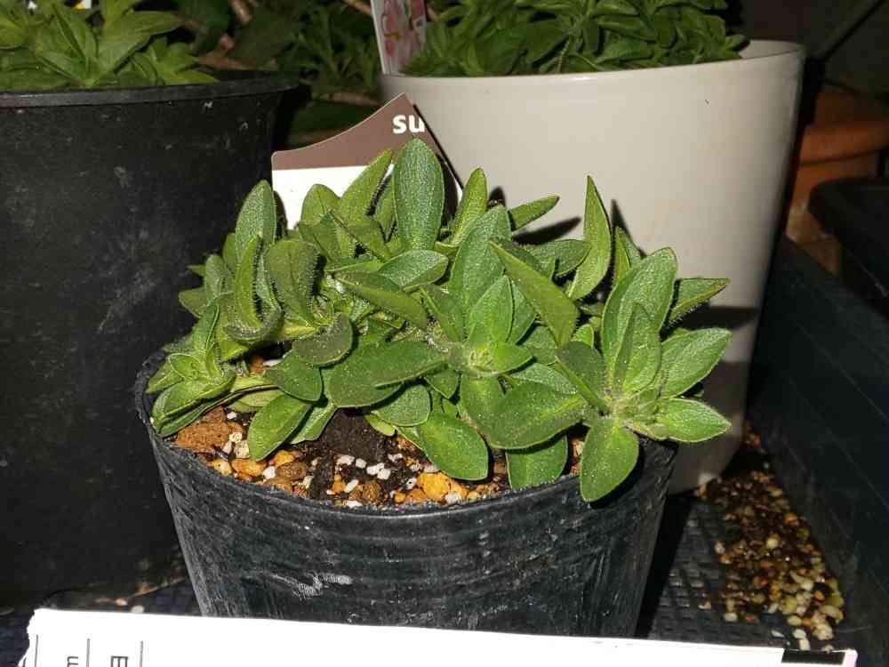 お得な二連のサフィニアレッドのなえ3月9日に買ってポットに植え替え10日めです