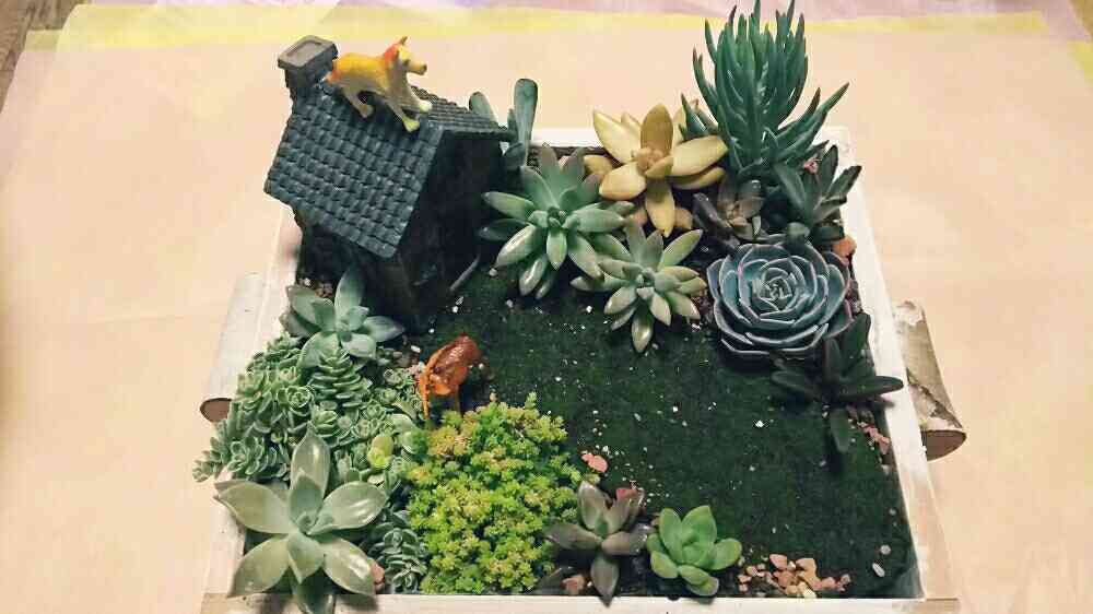 日本フラワーガーデンショウにて作った多肉の箱庭🎵