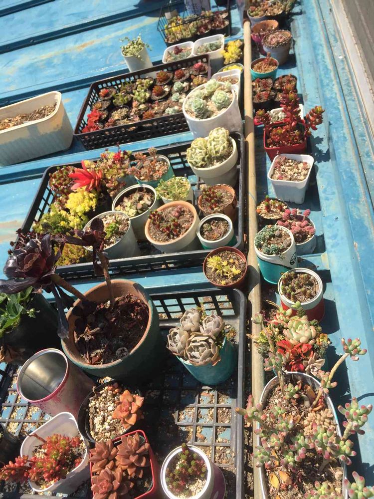 ココはお気に入りのセダムとお水大好きエケベリアの繁殖場