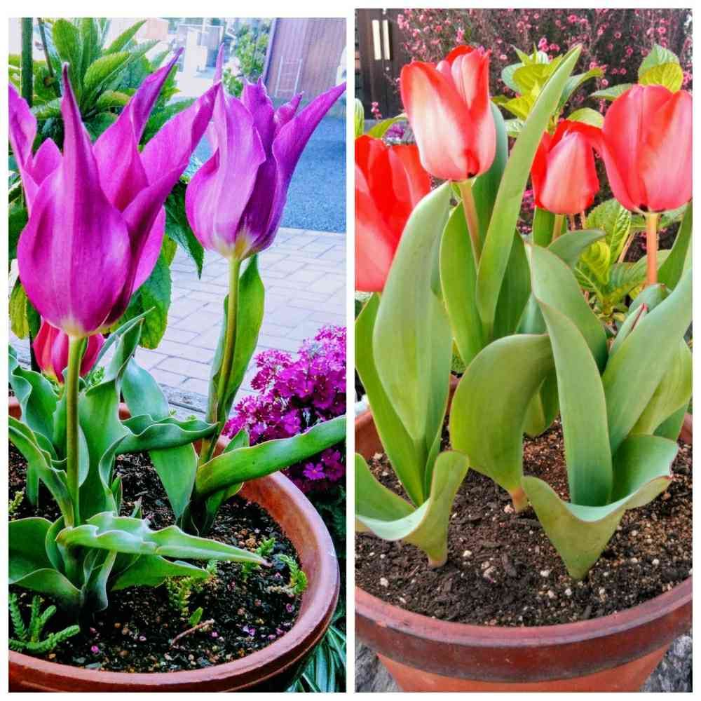 お出かけ先,ご近所の花壇,チューリップ2種の投稿画像