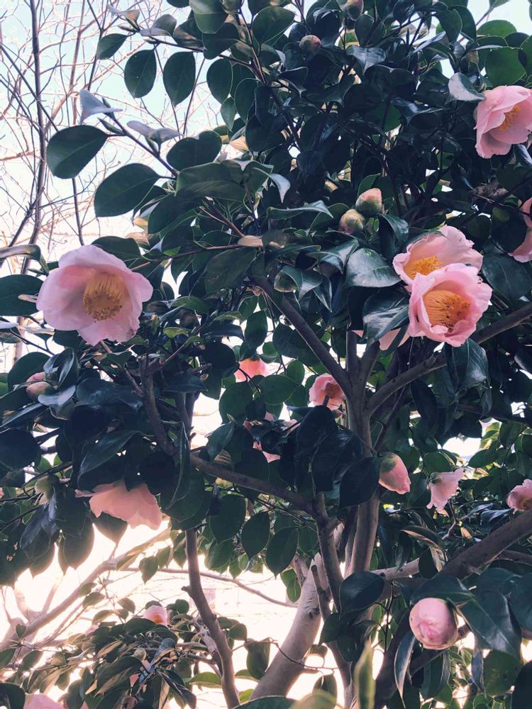 もう老木になりましたが、我が家の曙椿です。まん丸の蕾から 大輪の薄桃色の花を咲かせます。
