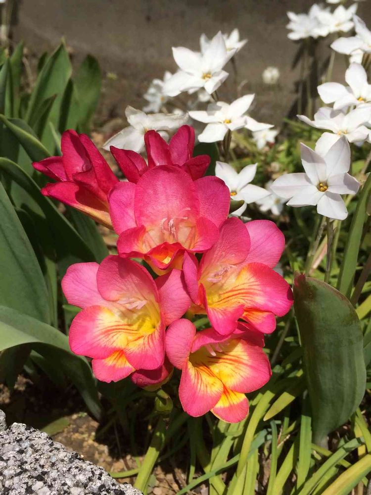 道端に咲くピンクのフリージアが可愛いです❁.*・゚綺麗…。