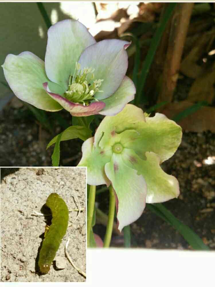 小さな庭,クリスマスローズと青虫,花のある暮らしの投稿画像