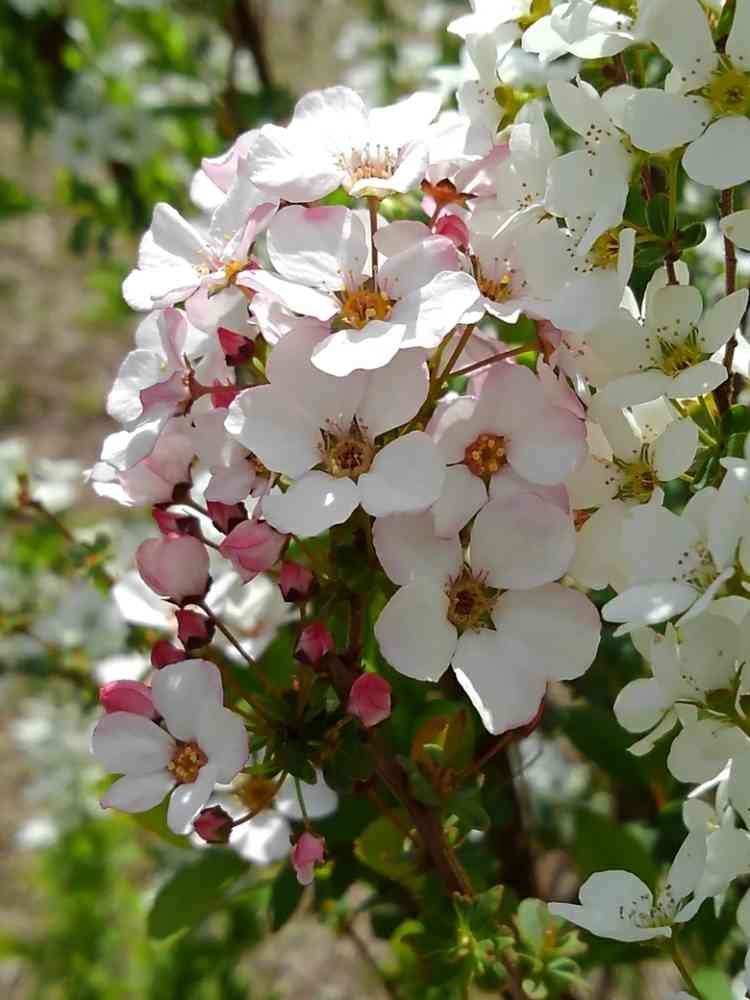 白いユキヤナギの中、