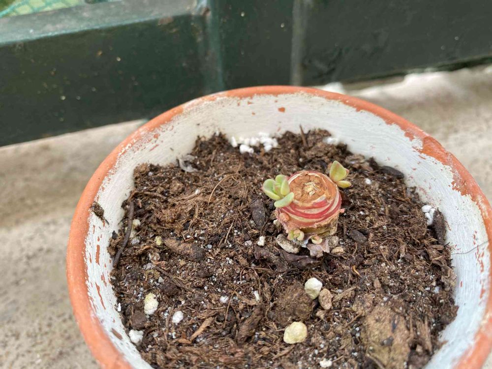2つの新芽は大きくなったし、また新しく3つの新芽🌱 胴切りした上の部分も根っこ出てきたし将来はレインドロップで丼😛?