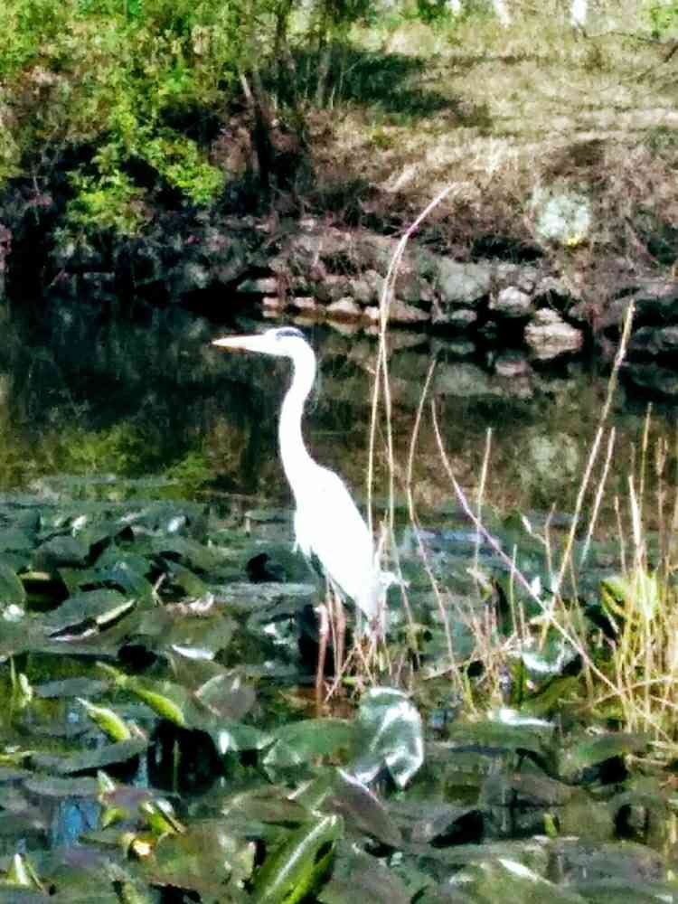 水元公園、水辺の里の池の水性植物の中に、アオサギがいました。