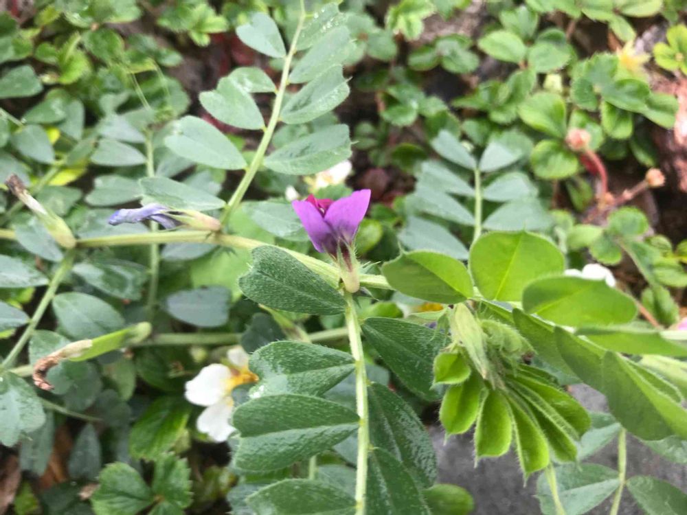 近くの植え込みに咲き始めたヤハズエンドウを見つけました。