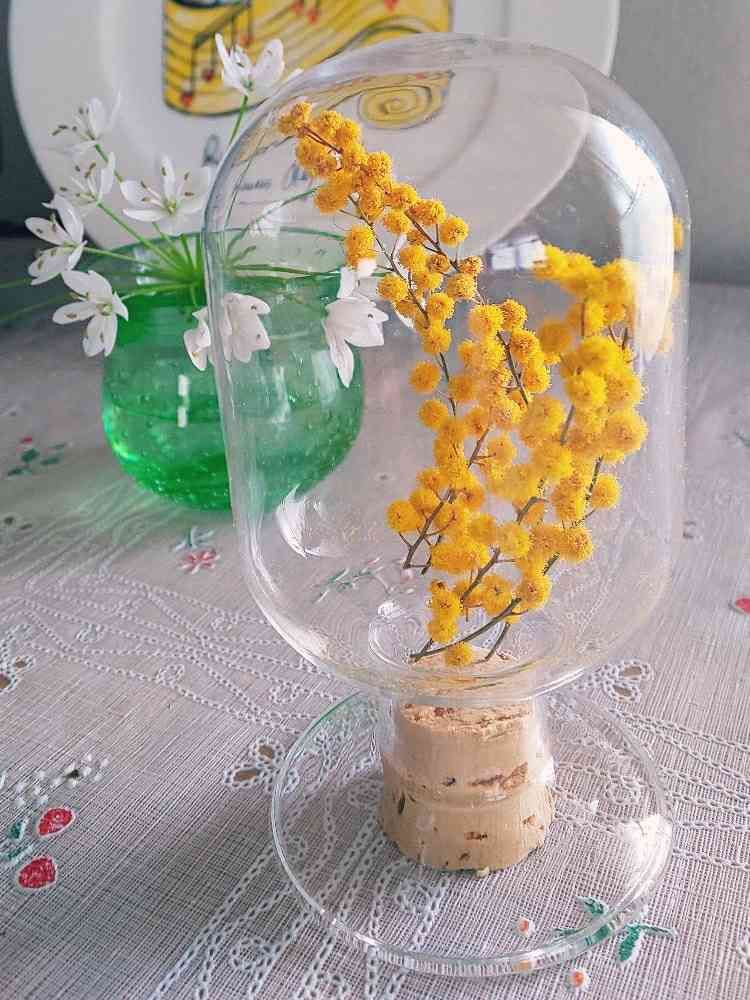 雑貨屋さんでシードグラス見つけた時、これにミモザドライ入れたら可愛いかも!💡✨って閃いたの😉