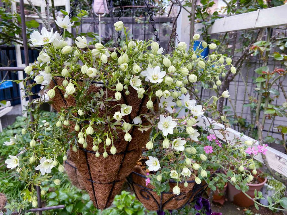 昨年は鉢植えにしていましたが、今年はハンギングバスケットで育てています。