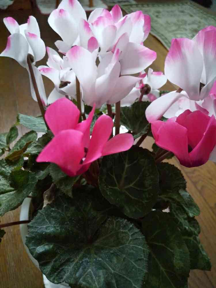2019年…に買い求めて一年夏越しさせたシクラメン…色変わり咲き〜…元気に咲いてます…(>ω<)ウレシイワ🎀❣️💝💟💚💖🧡💦💜💗😉🤗…