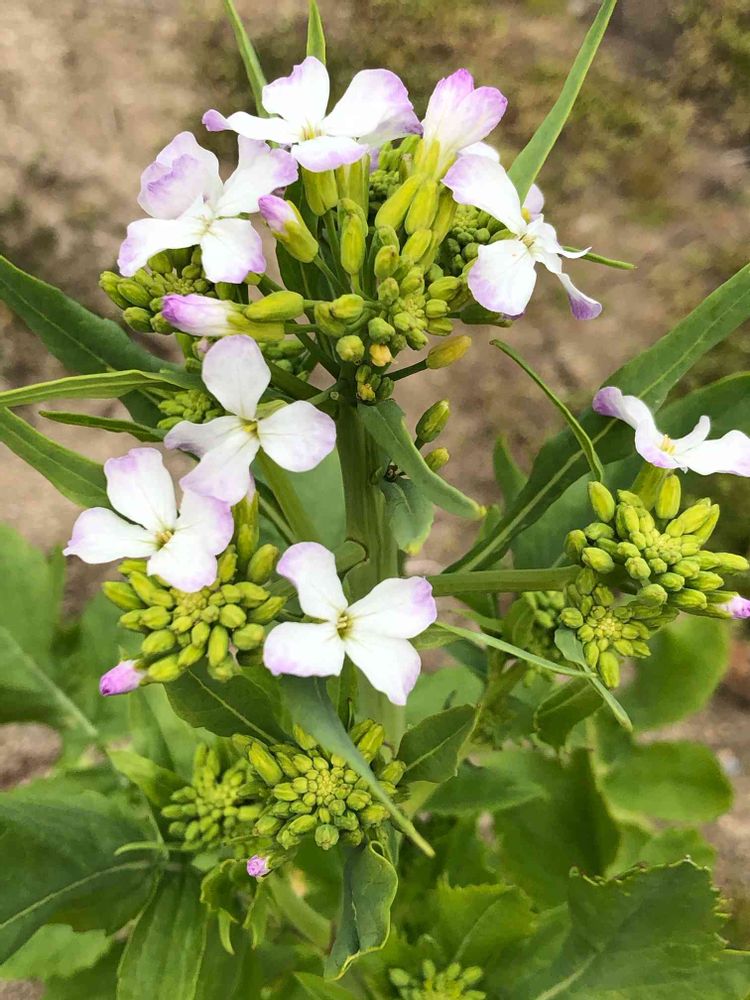 大根のお花ってこんなにかわいい色合いなんですね!💕ほんのりピンクが素敵ですねー😊🎵🎶