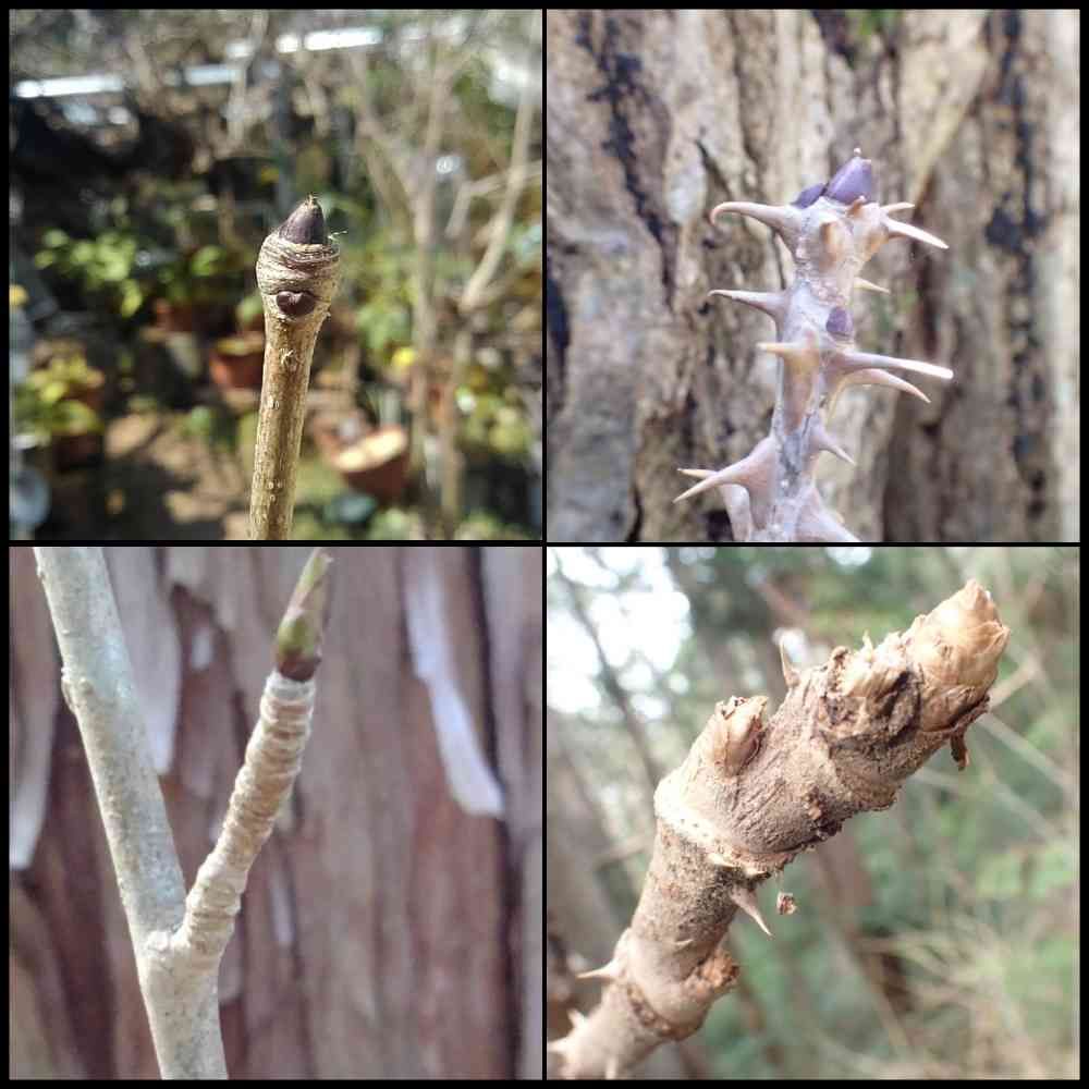 タカノツメ(イモノキ)タカノツメ属 山菜 細工物 材が柔らかく他に役立たない。葉痕が多く細長の尖った芽形から鳥の