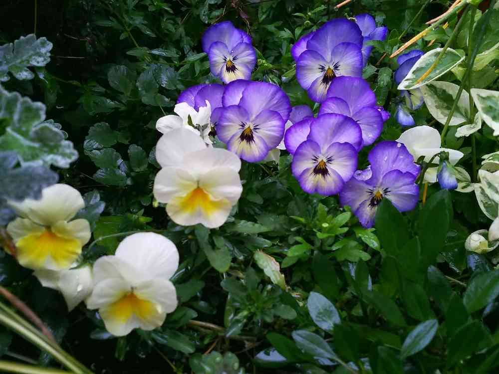 雨の中ひっそりと咲いてくれてました(*^.^*)💚💛💜