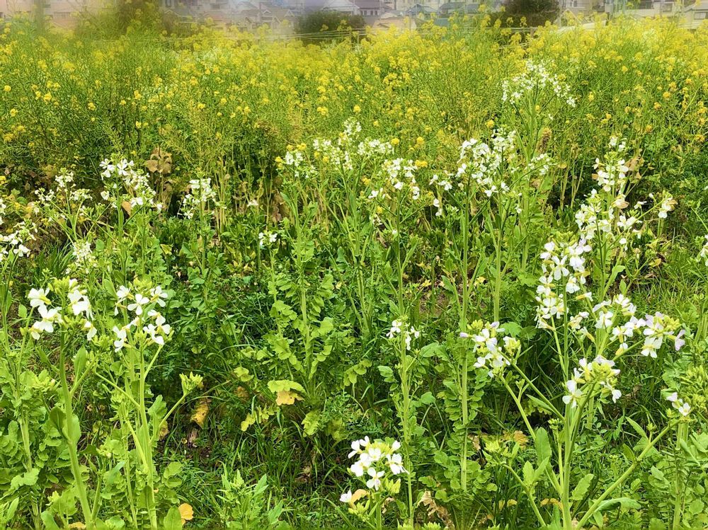 近所の畑に植えられてた大根が成長して、花畑になってました😊