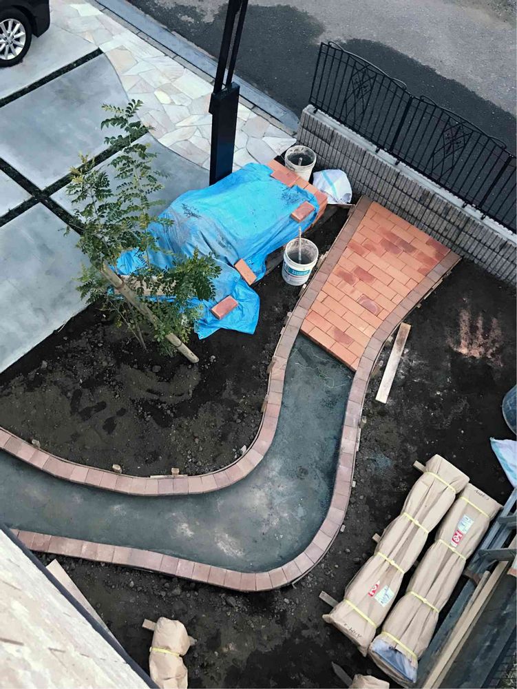 真ん中レンガの道作ってアーチ立てて立水栓取り付けて…まではいいけど😅