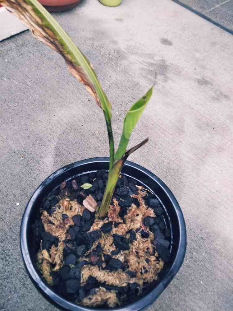 去年分けた耐寒性ミニ🍌の新芽が伸び始めた。スイッチオン🔛