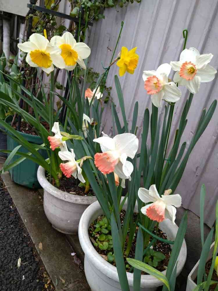 仕事中に見つけました。ラッパ水仙三色が綺麗でした💖🥰🎶