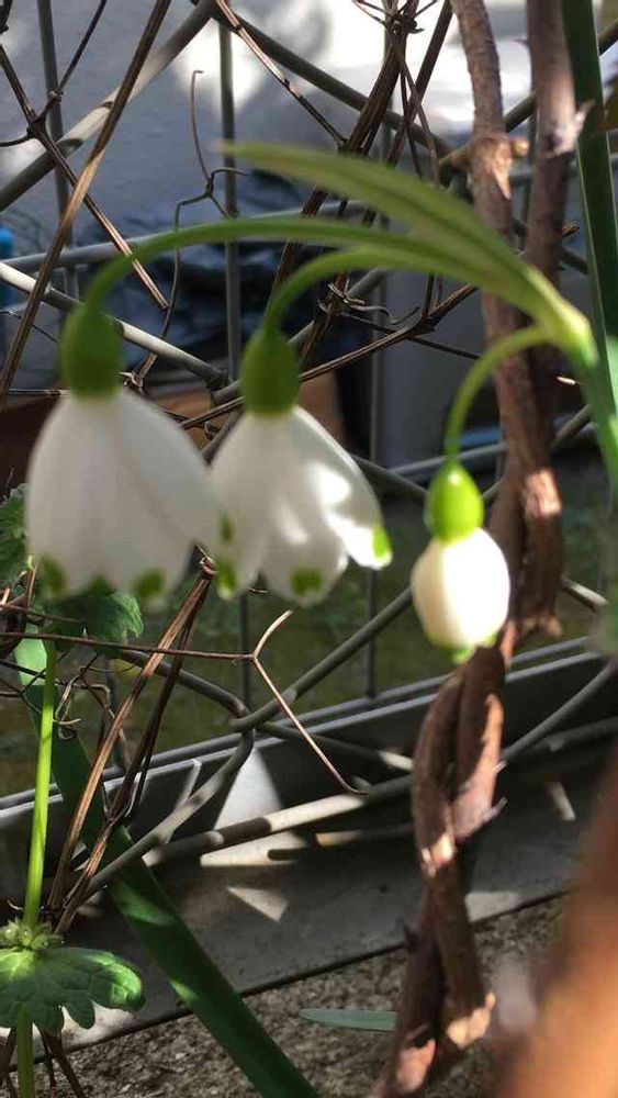花びらの先に緑の点があるので、スノーフレークというお花ですね〜