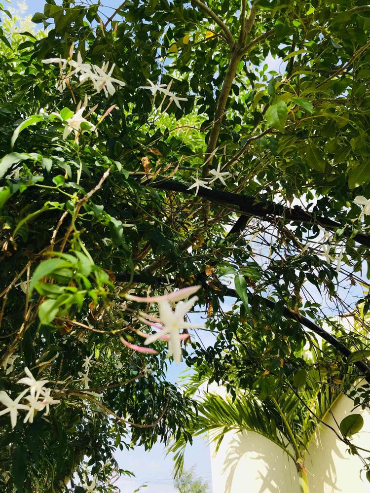 台風にも負けず夏を越した羽衣ジャスミンがやっと花盛りで嬉しいですね☺️💕