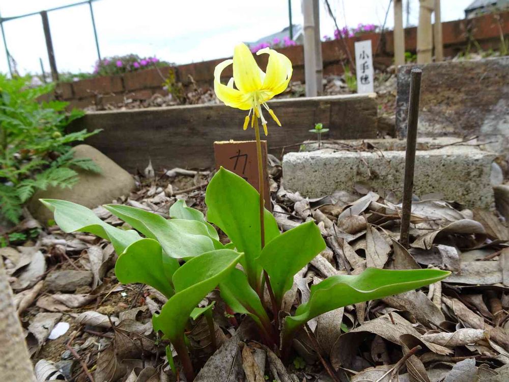 誰かが黄色いカタクリの花植えてくれて立派に咲きました