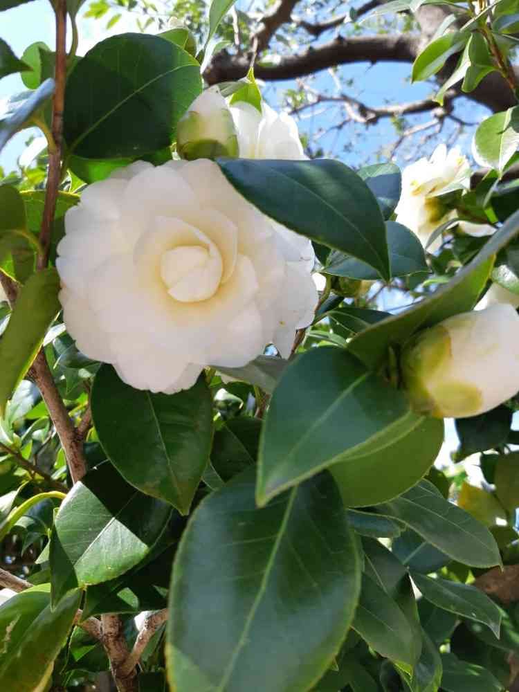 🍀つばき ホワイト🍀 垣根から。💮💮💮
