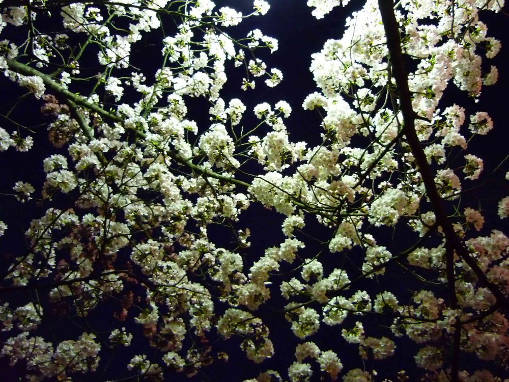 お昼の花見より、夜桜見物の方が好きです。夜、ボンボリや街灯に照らし出された桜は、ことさらきれいに見える気がします。