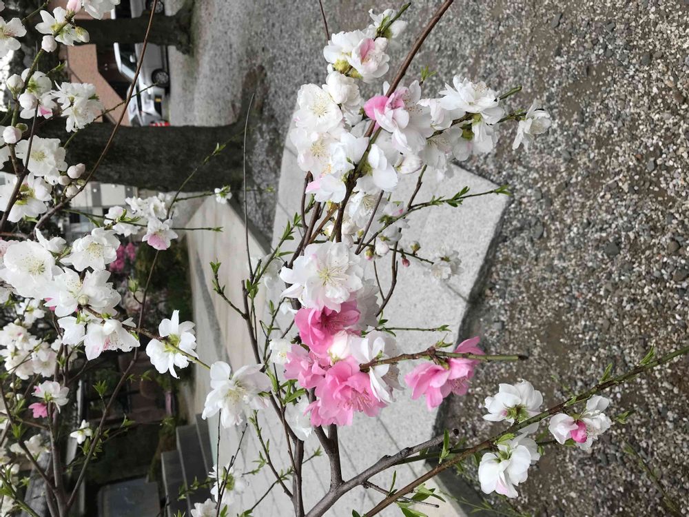 同じ木に白とピンクの花が咲いています。桜だと思うのですが・・・名前を教えてください。
