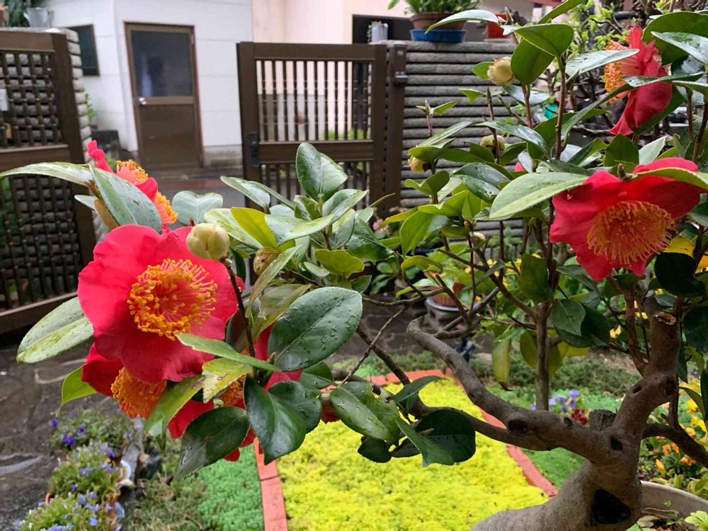 『肥後つばき』です。50年に前に私が山から椿の根っこを採ってきて水に1ヶ月程浸けて鉢にあげて肥後つばきの穂をつぎ木したものです。