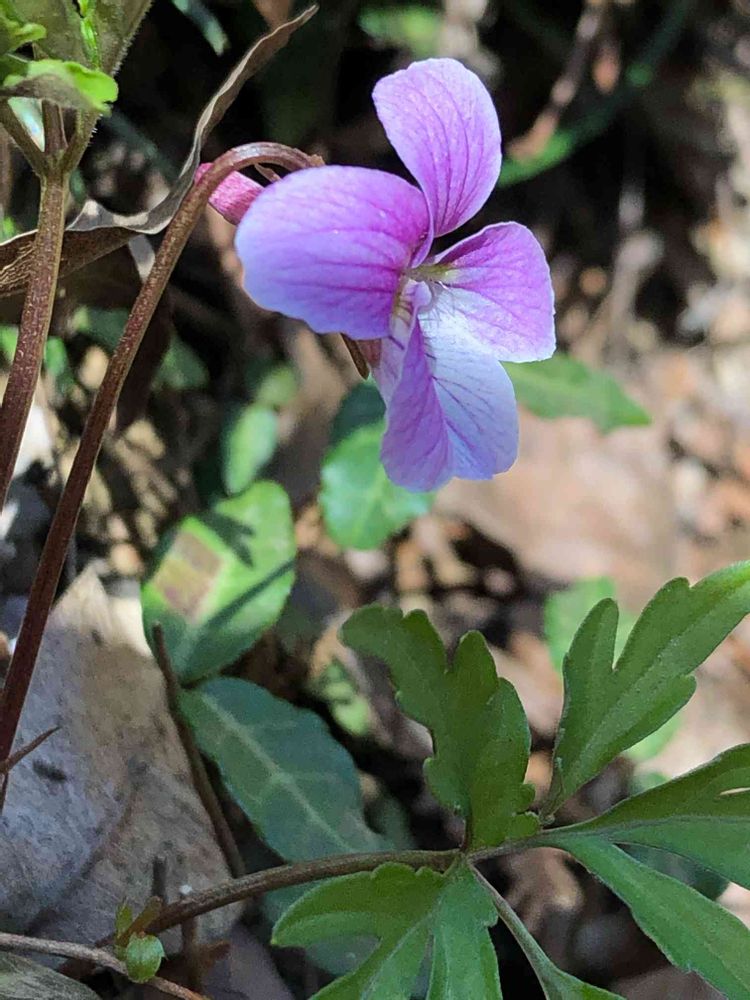 3月25日に投稿したエイザンスミレはどちらかと言うと白花だったが、このスミレは紫がそれよりも濃く、筋がきれいに見える。