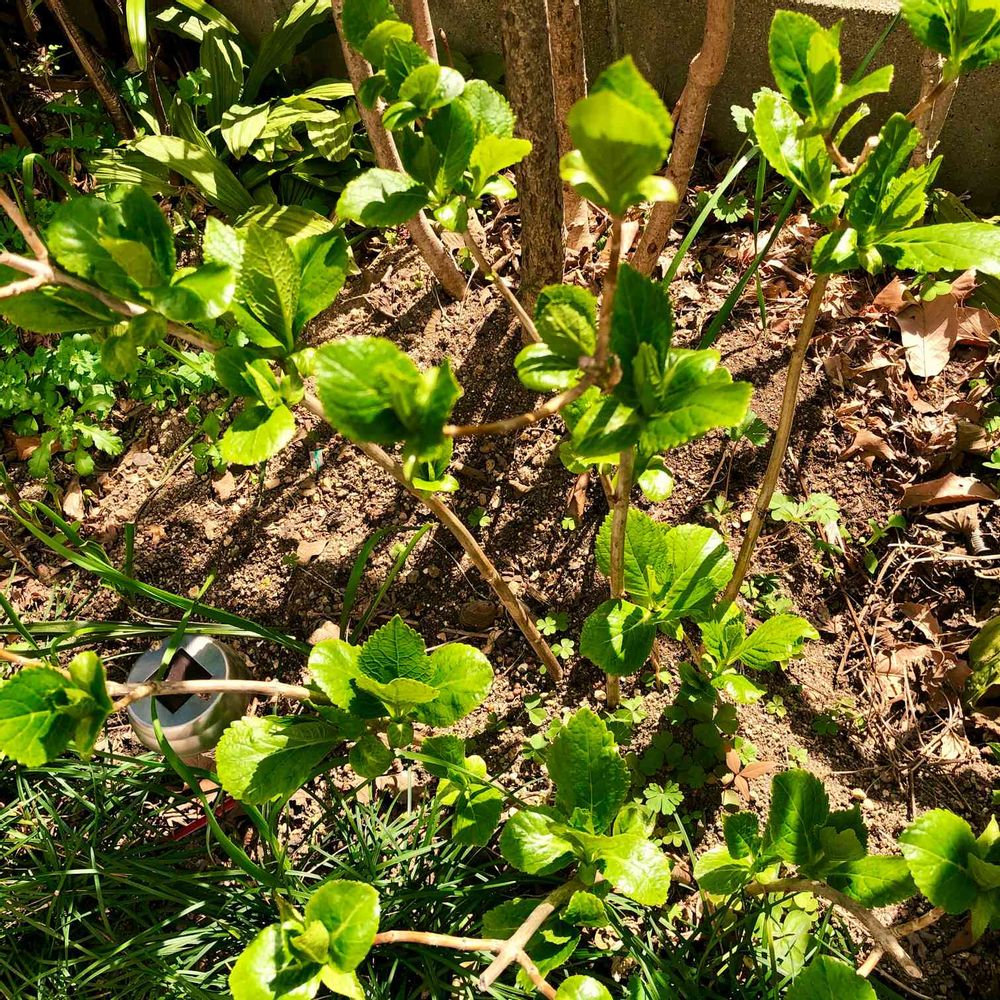 おはようございます。庭の紫陽花から新芽が🌱 春ですね。