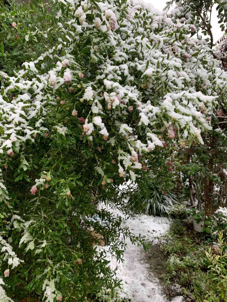 まさにこれから青い小花をたわわに咲かせようという時に、この重ーいミゾレ❄️