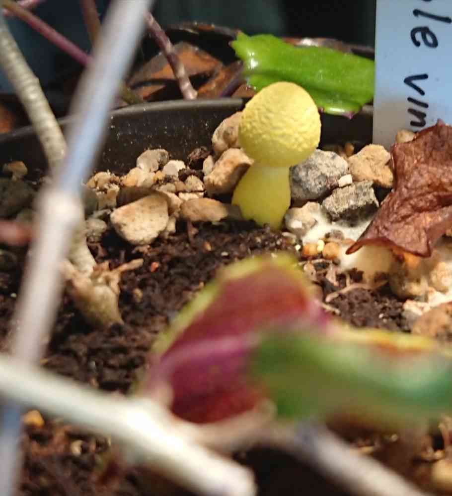 よくよく見たらあと2つ小さいのが生えていて菌糸も伸びていたんでしょう、土の表面に白い固まりもあったのでさっきそこも含めて撤去&ベントレートで殺菌しました😅