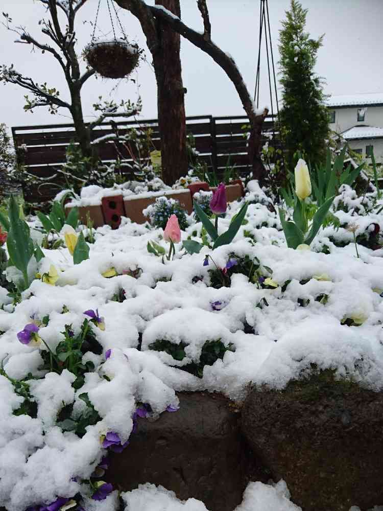 この時期の雪は水を含んでいて重いみたいで⤵️花が倒されていました💦