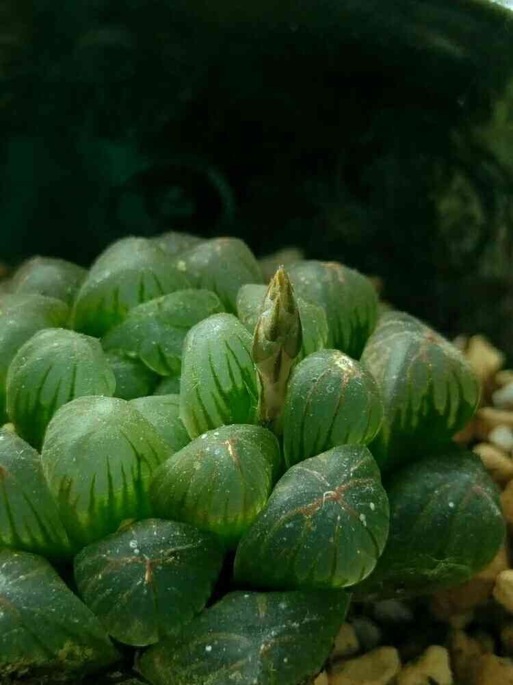 土とハオルチアの間からニョキっと葉っぱがでてきます