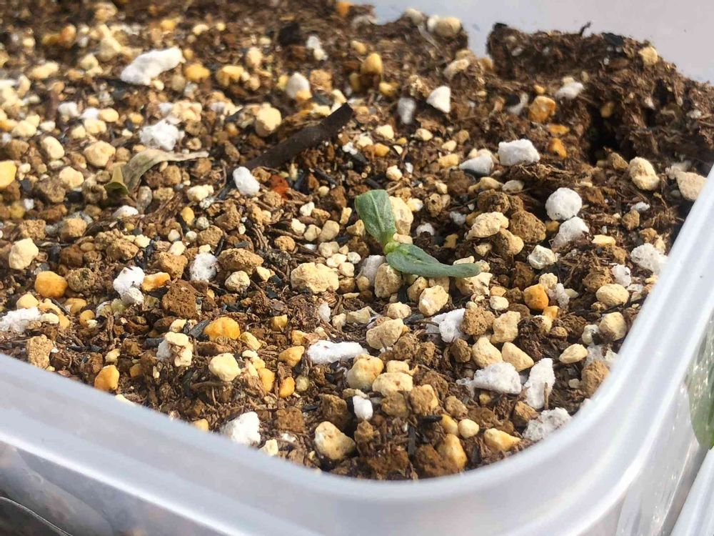コレは播種段階からしくじって、種を潰してしまうみたいな感じになって、それでも緑色が続いてたのでそのまま管理してたら