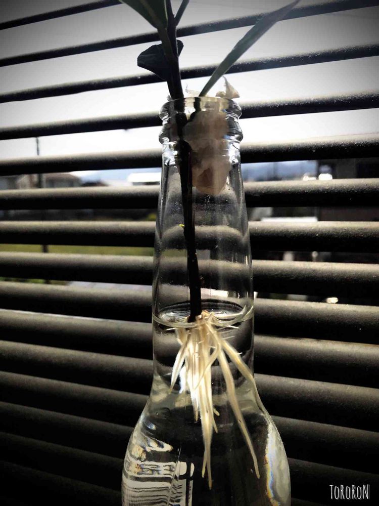 先週まで何の音沙汰もなかったカーテン後ろの出窓に置いていたガジュマルの切った枝から、いつのまにやら発根しておりましたっ‼️