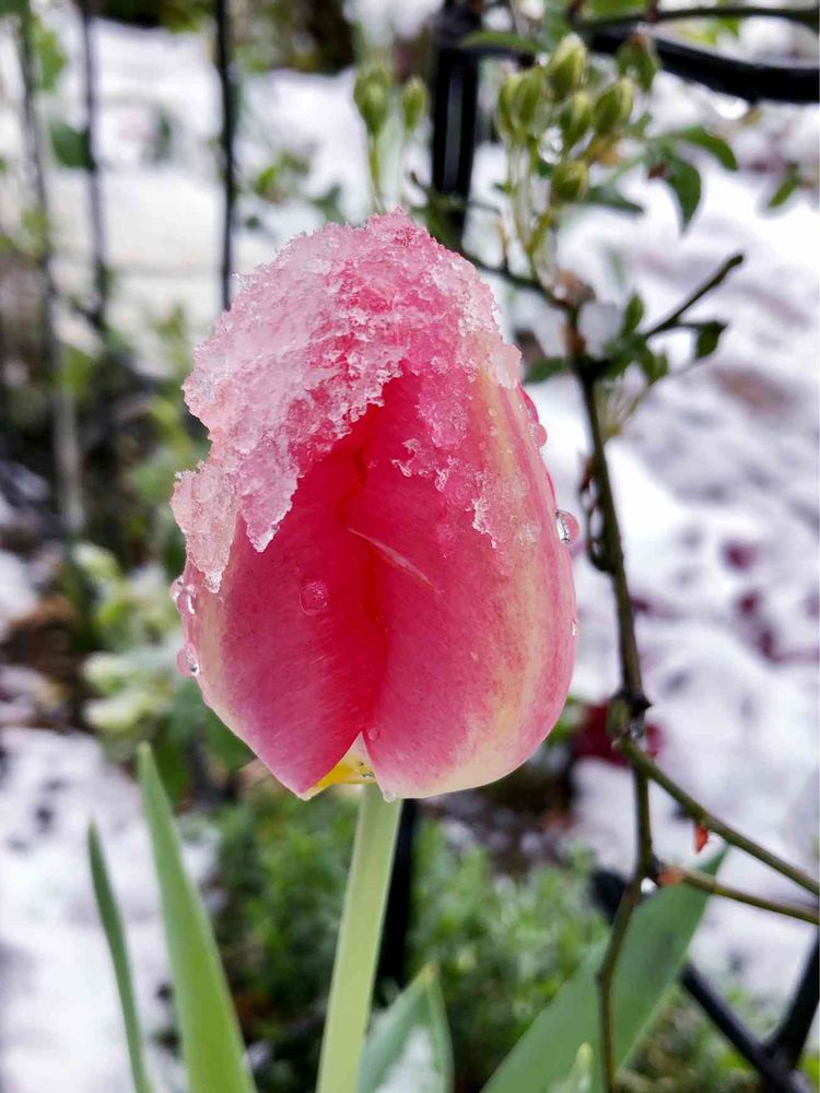 植物が芽吹きや開花を始めて、生命力を感じていた春の日に雪が降りました。この雪の振り納めと共にウイルス感染が収まって、清々しい春を堪能したいです🌸