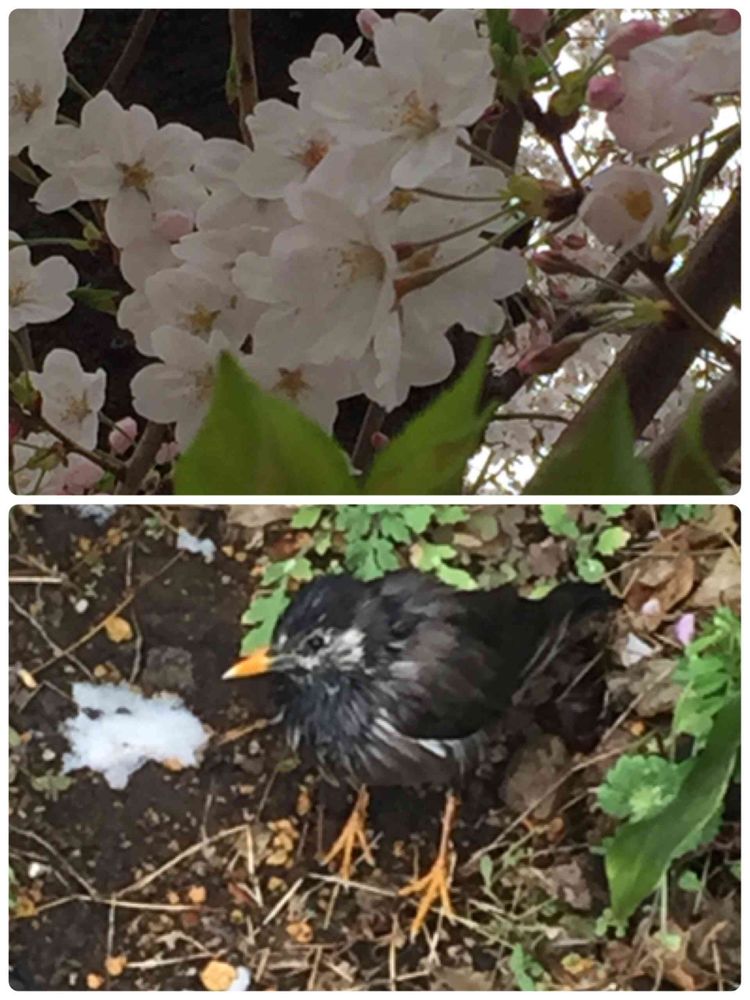 季節外れの雪で、ムクドリさんも寒そうですね❄️暖かなねぐらに帰ってね🐦