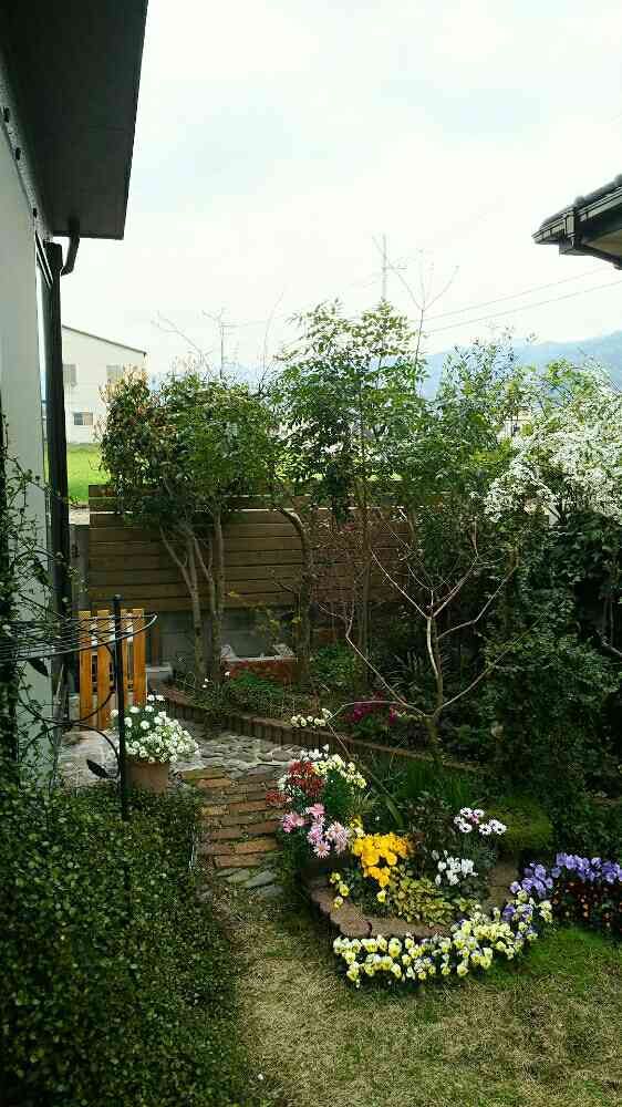 とっても可愛いい庭じゃないですか〜。石畳みから木の仕切りがあって奥の塀まで