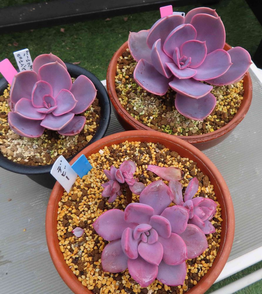 紫の多肉の饗宴。パールフォンニュルンベルグもデビーも過去にpost済みだけど、最近さらに色が濃くなってきた。どちらも葉挿しでよく増えるので、別の小さい鉢で増殖中。