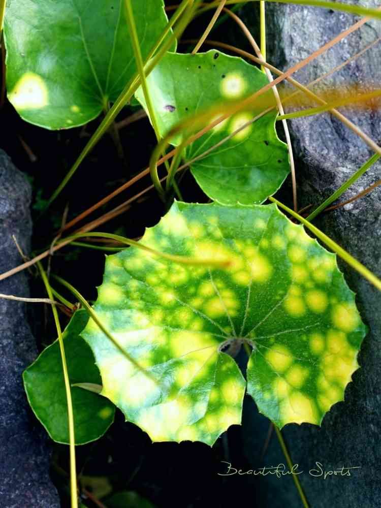冬を越した斑入りのツワブキ。⚪🥬🌱😄