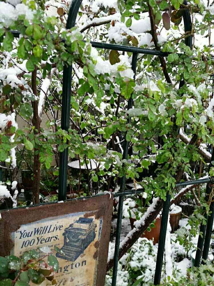 バラの新芽も季節外れの雪で模様替えです🌹🌿