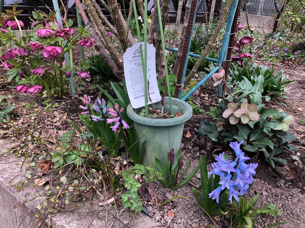 ヒヤシンスの後ろの方にクリローさん お迎えしたのをやっと地植えしました😅