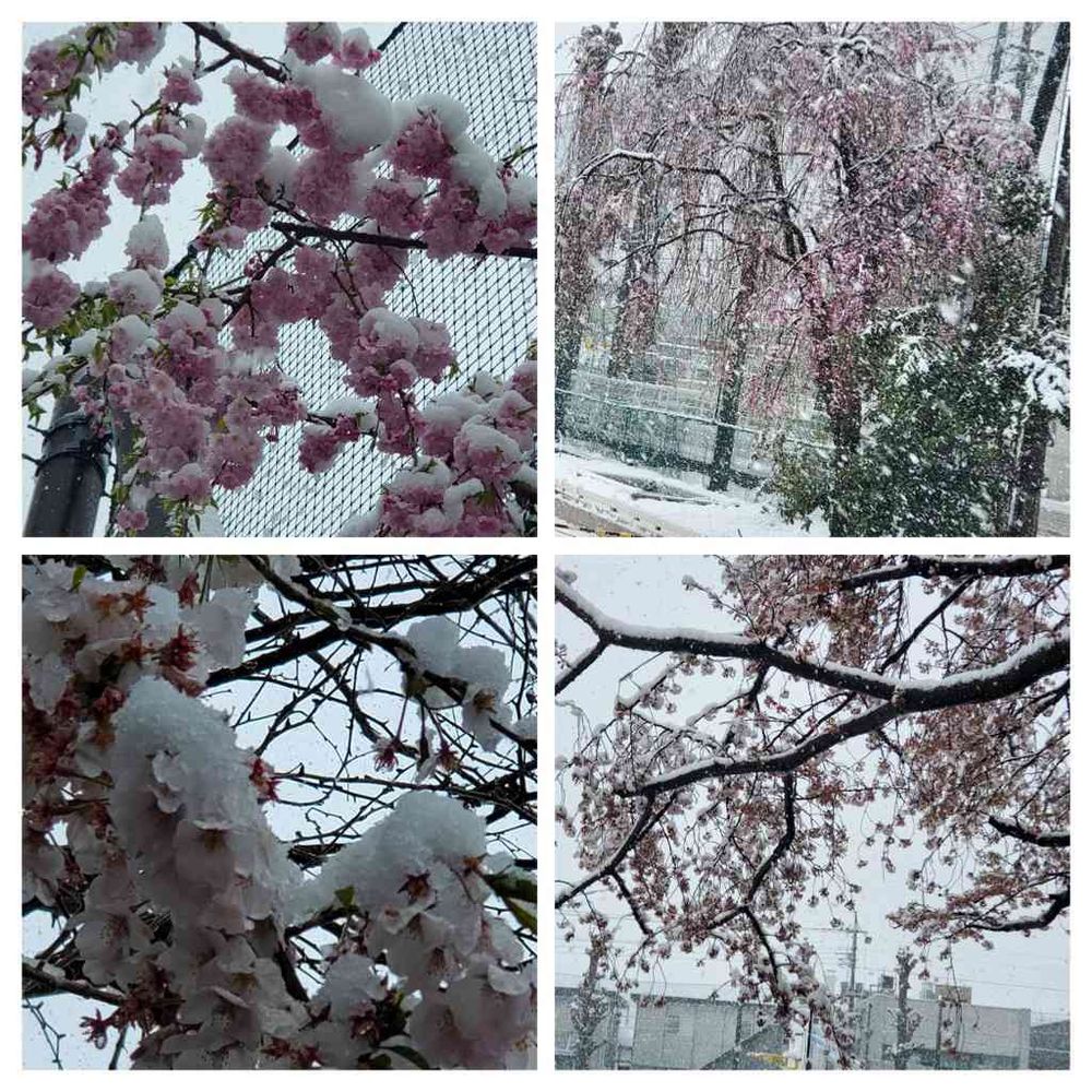 ❄季節はずれの雪と桜🌸*.+゚ 綺麗です〜