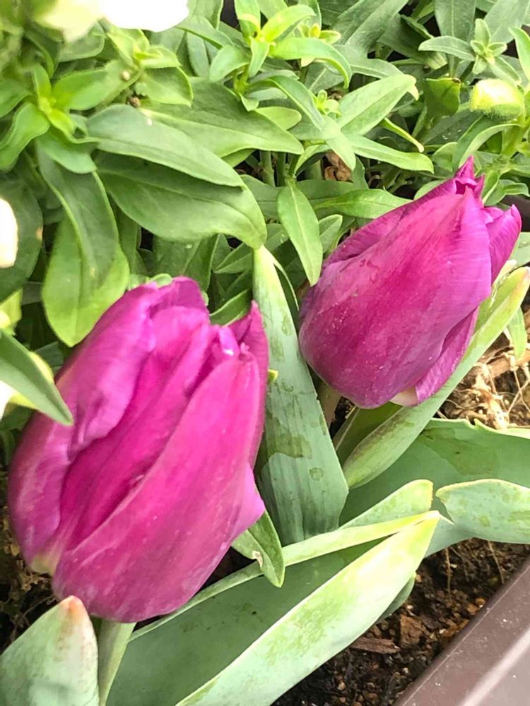 昨年、球根を植えてから数ヶ月、ようやく大好きな色、紫色のチューリップが咲いた💜